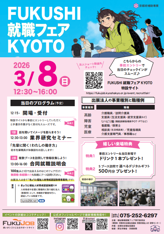 【一般求職者、学生向け】3/8(日)『FUKUSHI就職フェアKYOTO』に出展します!