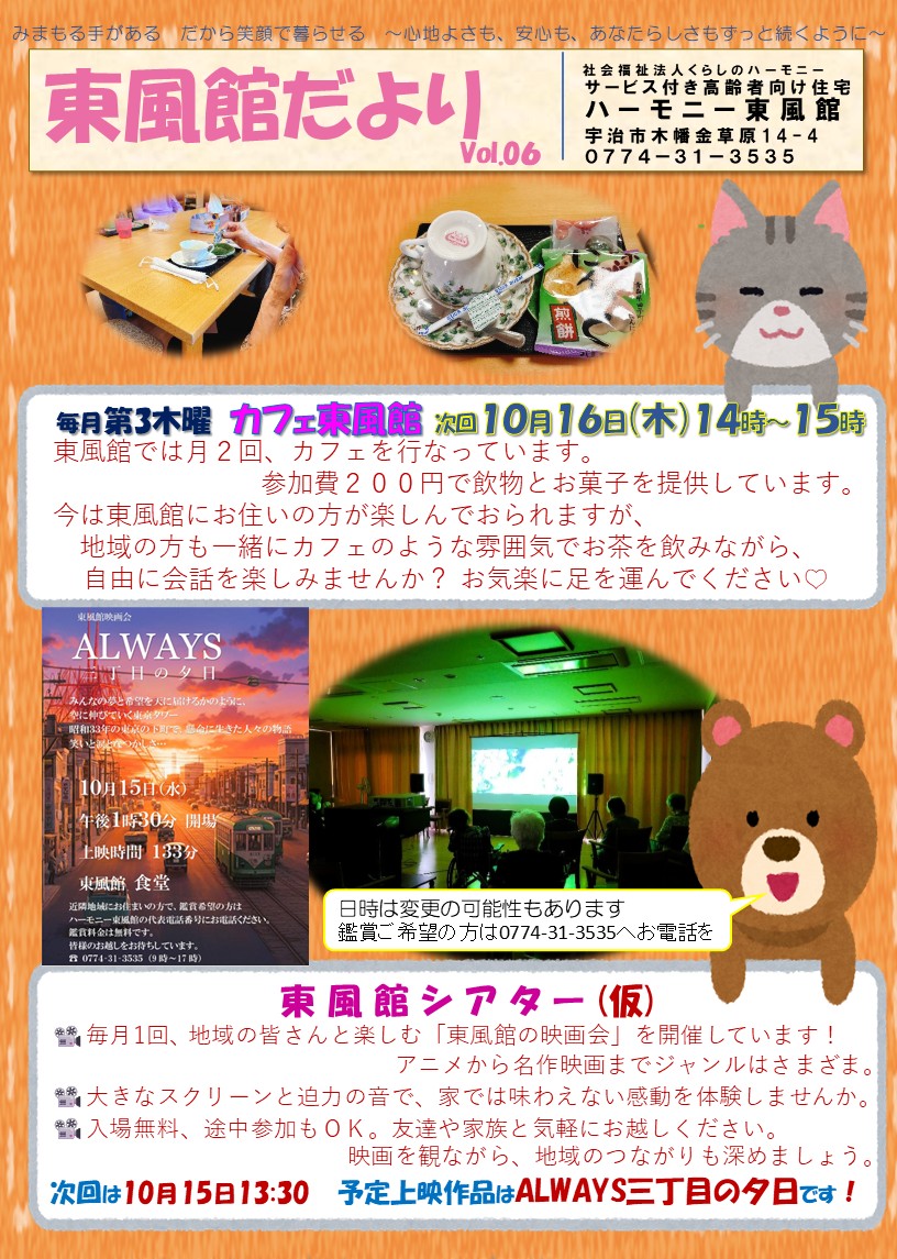 サービス付き高齢者向け住宅 ハーモニー東風館だよりが発行されました